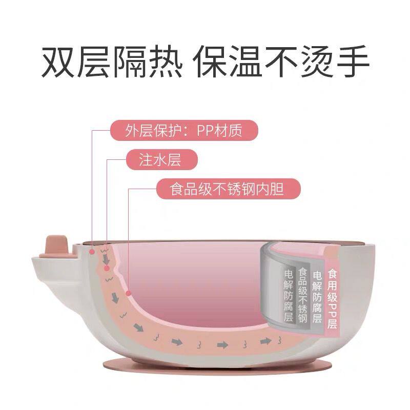 Baosheng cute baby water injection insulation children's tableware set to eat non-staple food anti-fall baby stainless steel suction cup bowl