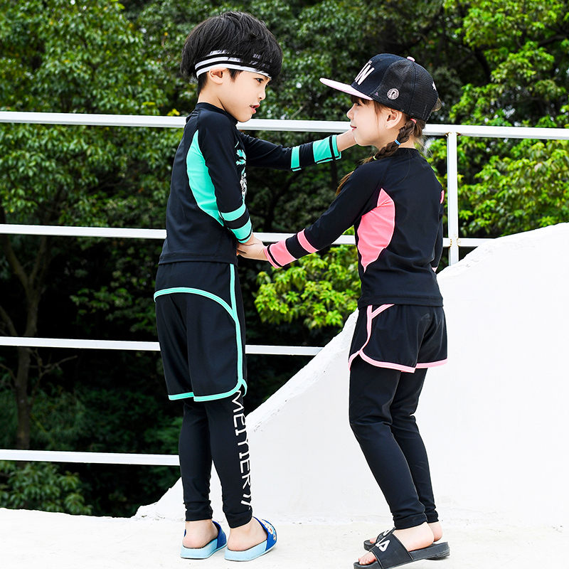 Children's swimsuit Men's and women's swimming trunks Long-sleeved bathing suit swimming trunks Two-piece warm sunscreen hot spring students middle and large children