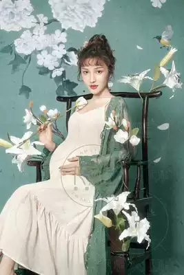 97 Huamu theme pregnant women photo clothing photo studio photography Chinese Gongbi painting big belly pregnant mommy photo maternity clothing