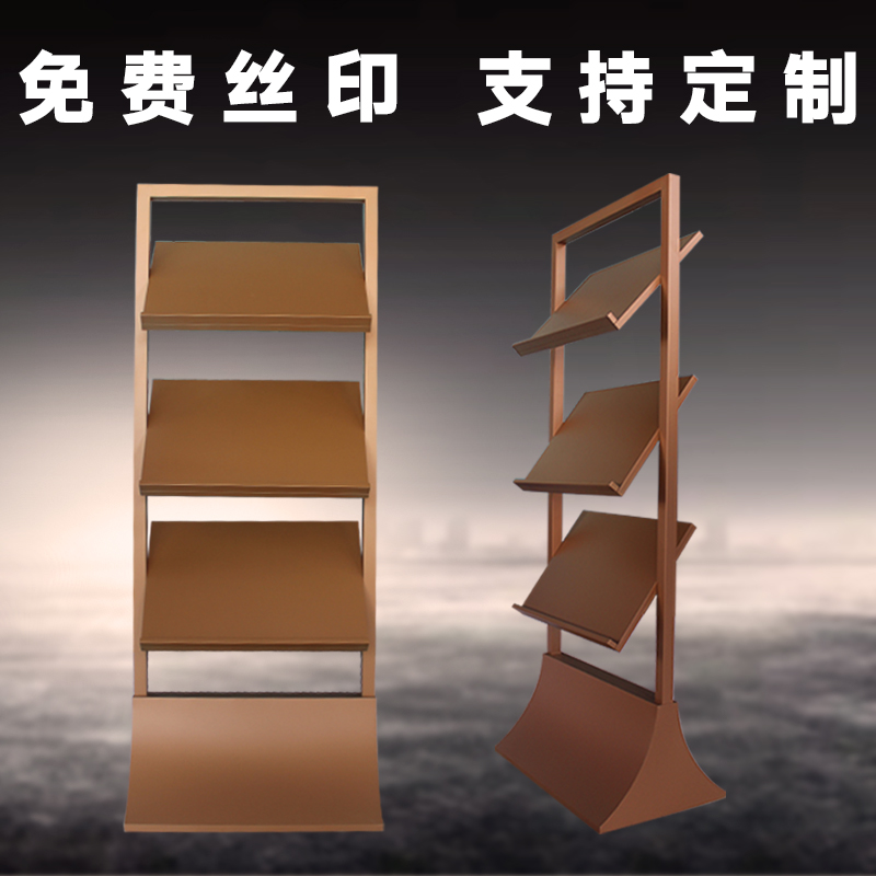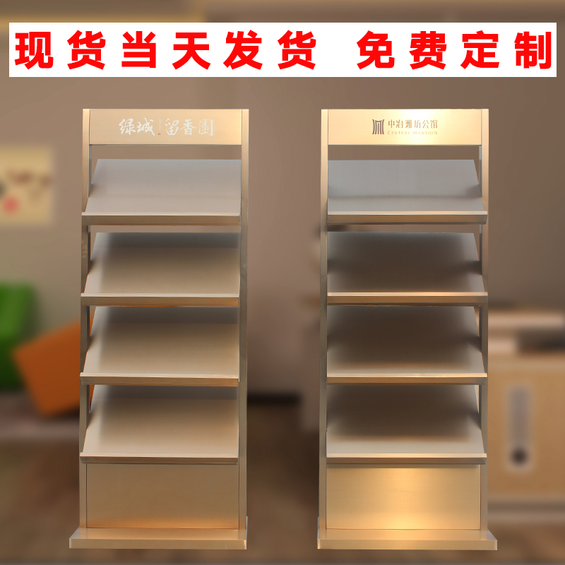Custom real estate vertical floor magazine rack iron sample house display center single page folding newspaper data rack display rack