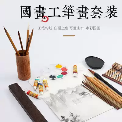 Chinese painting meticulous painting brush set professional grade painting rat beard tendon hook-up Pen flower branches beautiful wolf sheep sheep White description Wenfang four treasures watercolor painting Chinese landscape painting special large, medium and small Baiyun pen