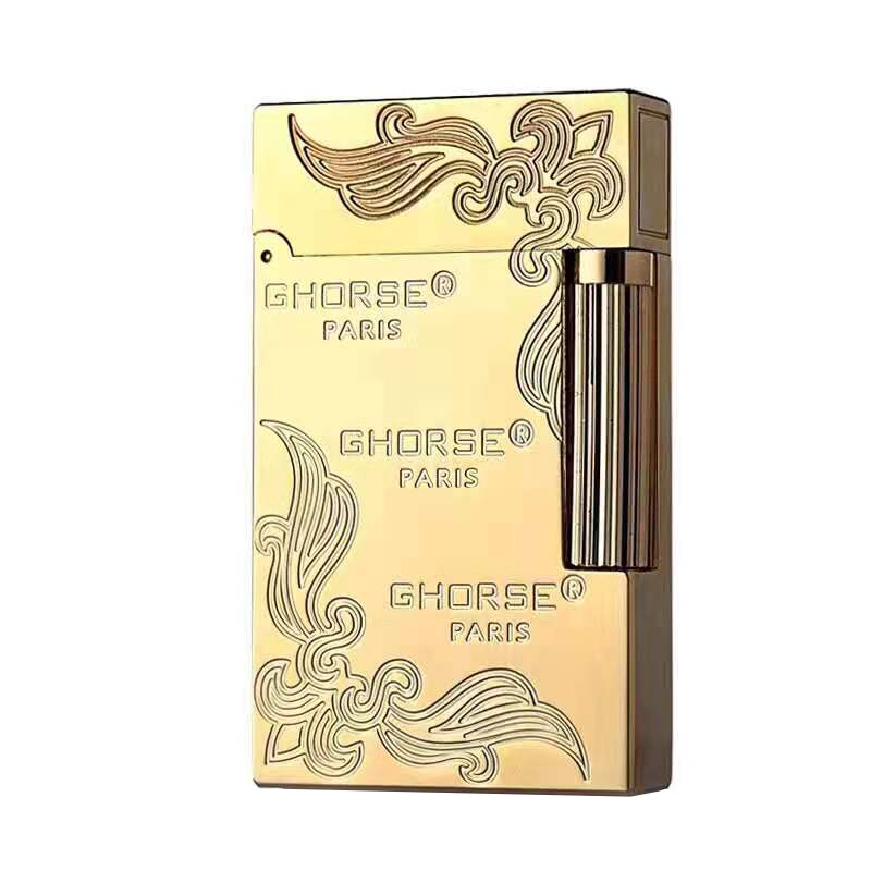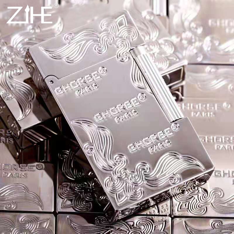 French zihe men Lang sound lighter custom windproof inflatable retro ultra-thin personality grinding wheel style pure copper