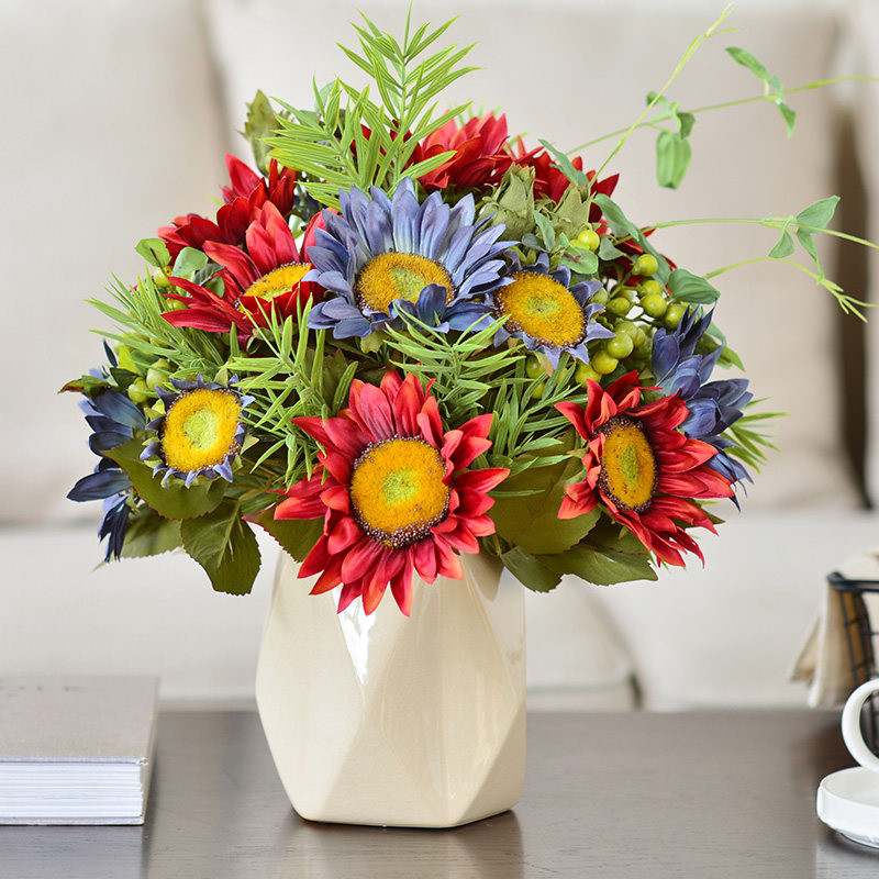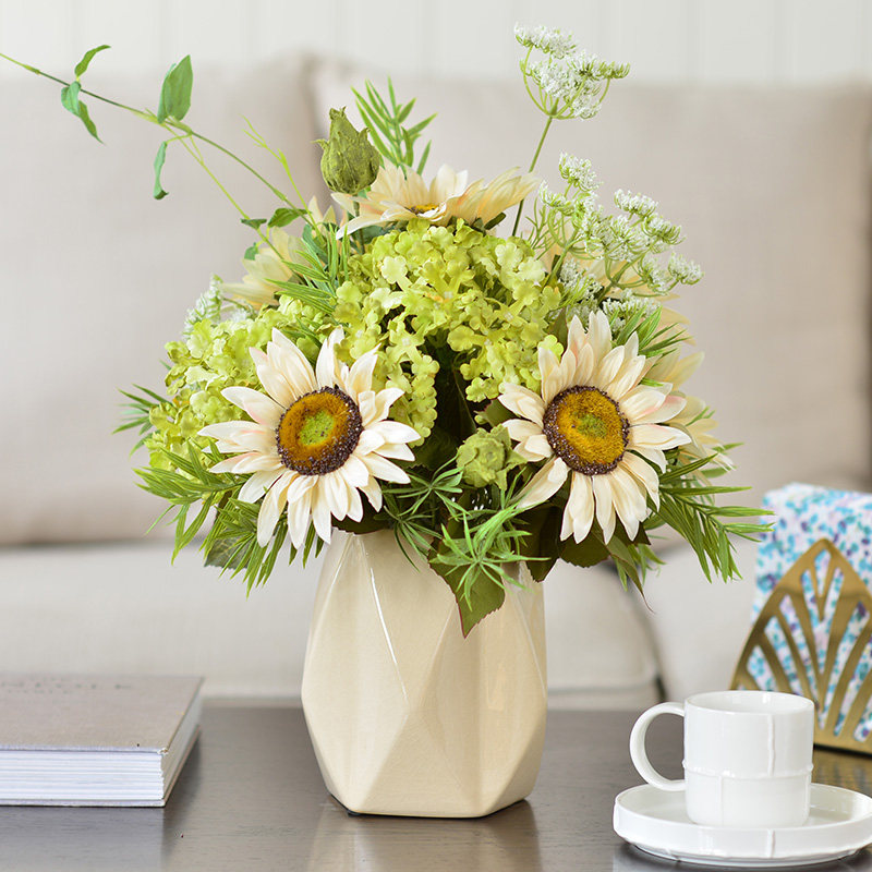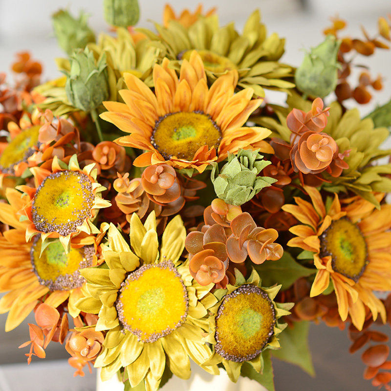 Sunflower sunflower simulation flower flower set living room dining table TV cabinet fake flower decoration decoration oil painting pastoral