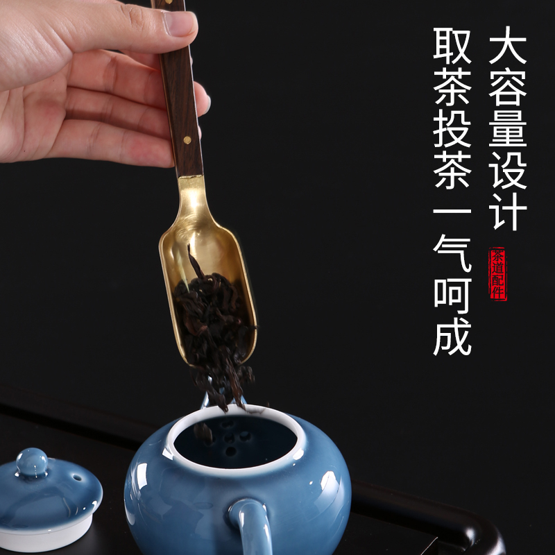 Copper wood Tea Ceremony Six Junzi Solid wood ebony set Copper Art Kung Fu tea accessories Daquan Tea knife pen tube Tea clip