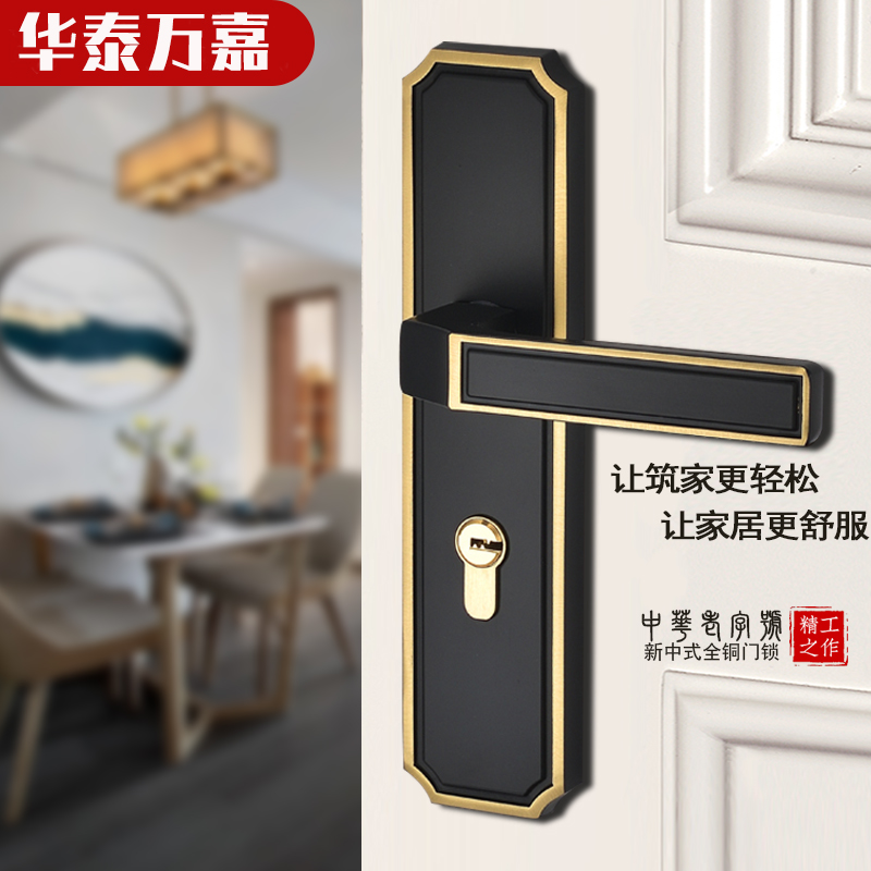 Pure copper door lock in room bedroom home with solid wood door lock new Chinese common type of all-copper silent antique room lock