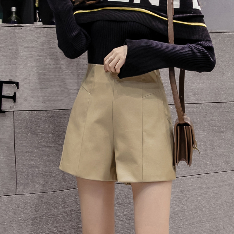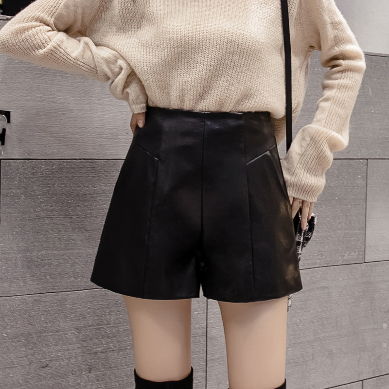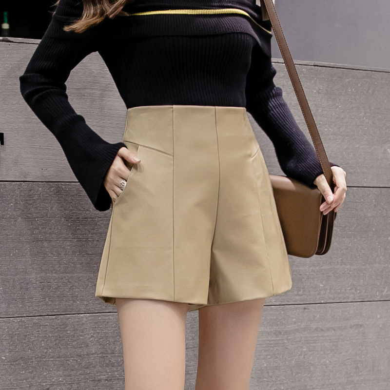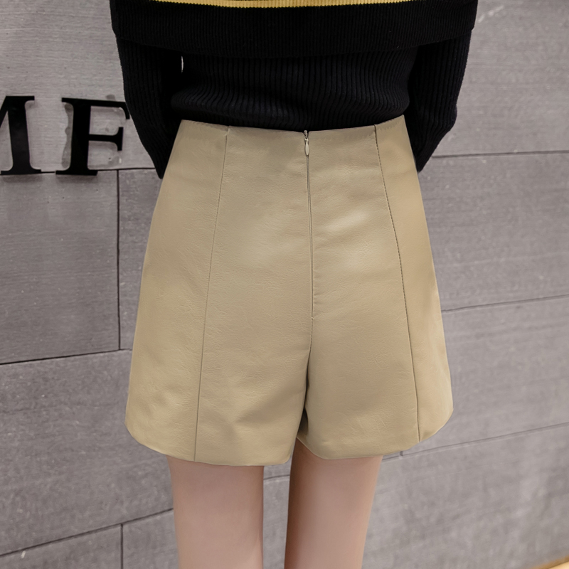Leather shorts women's winter style 2022 new outwear Chains fashion high waist beating bottom a character spring autummy wide leg skinny boots