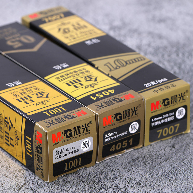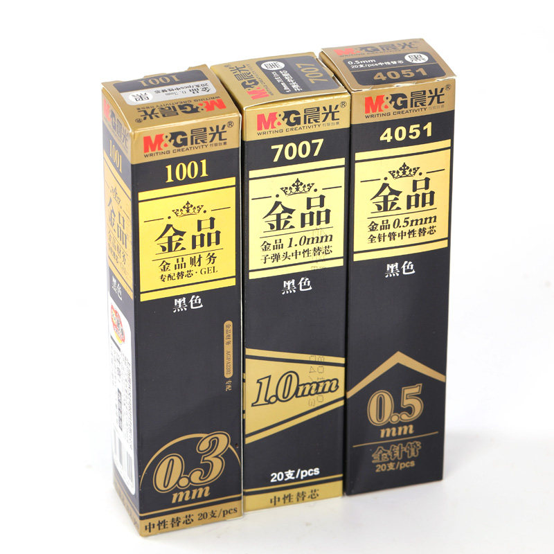 Morning light stationery gold neutral pen core signature pen for the core financial business office bullet head full needle black carbon water-like pen replacement core 0.5 1mm gold 4051