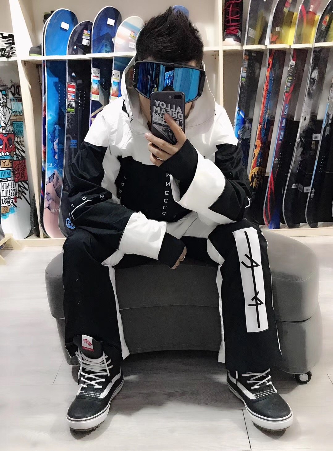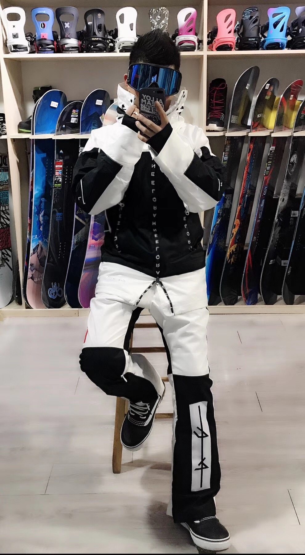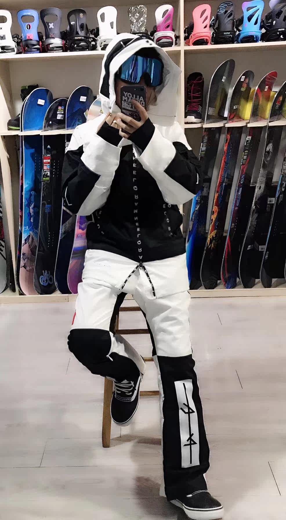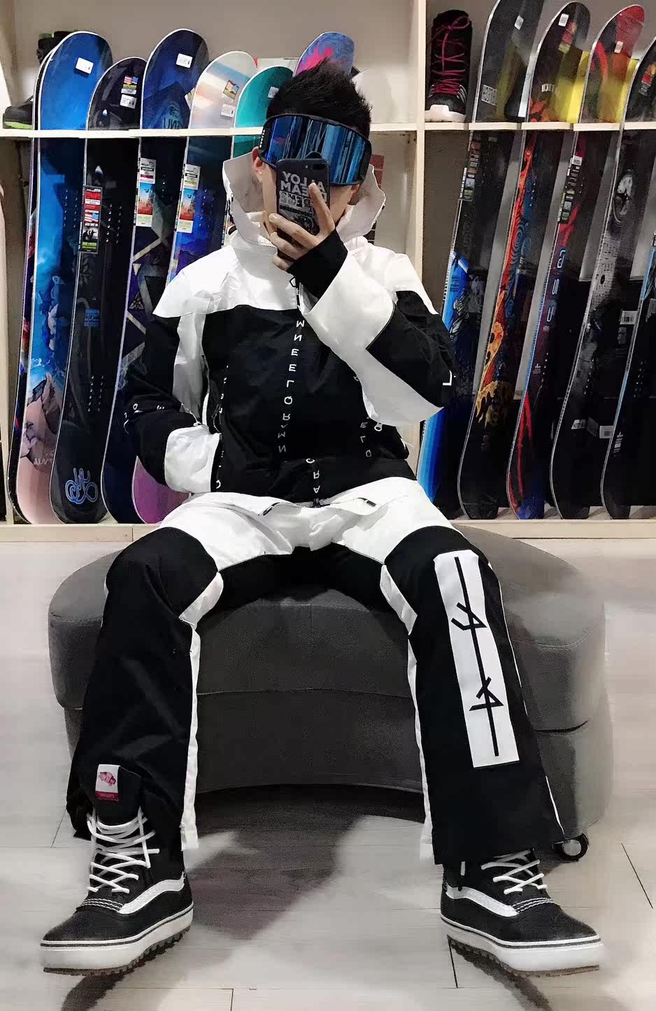 Black and white color snowsuit blouse black and white snow suit blouse