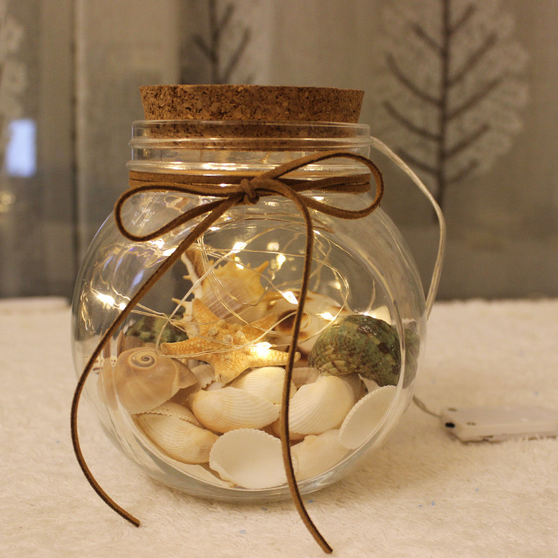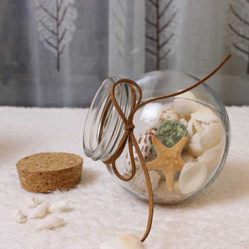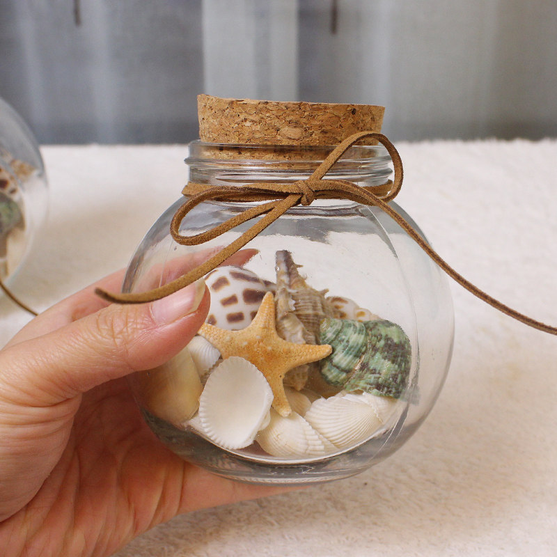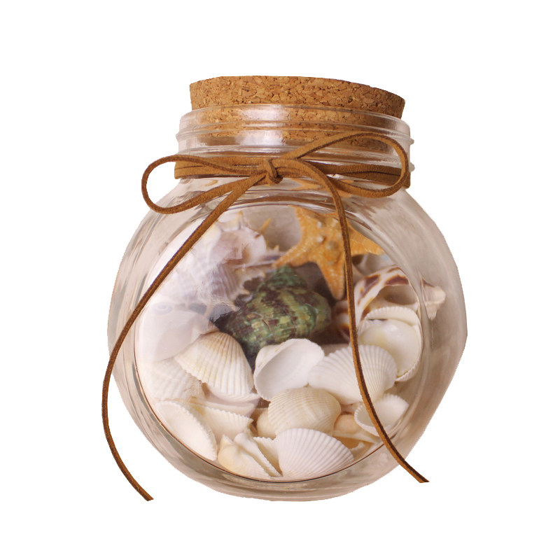 Creative installation of natural shells ocean drift bottle cork transparent beach conch wishing bottle glass jar star bottle