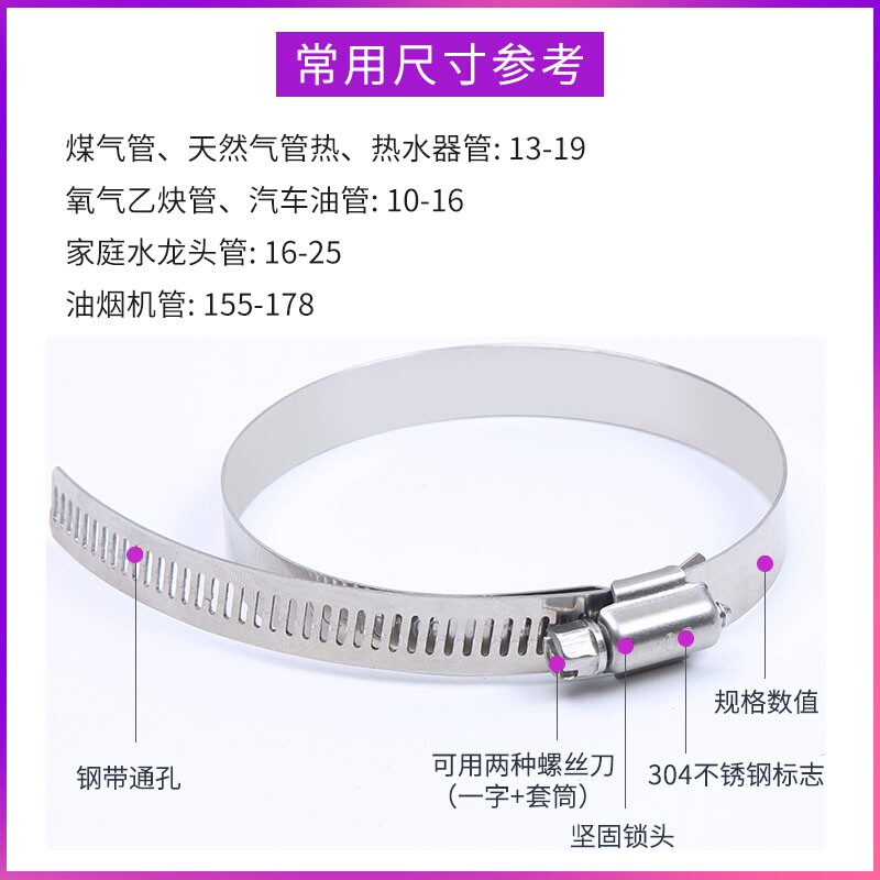 304 stainless steel hoop laryngeal stirrup pipe clamp hoop hose pipe hoop buckle powerful hoop tube card holder Sino-American style