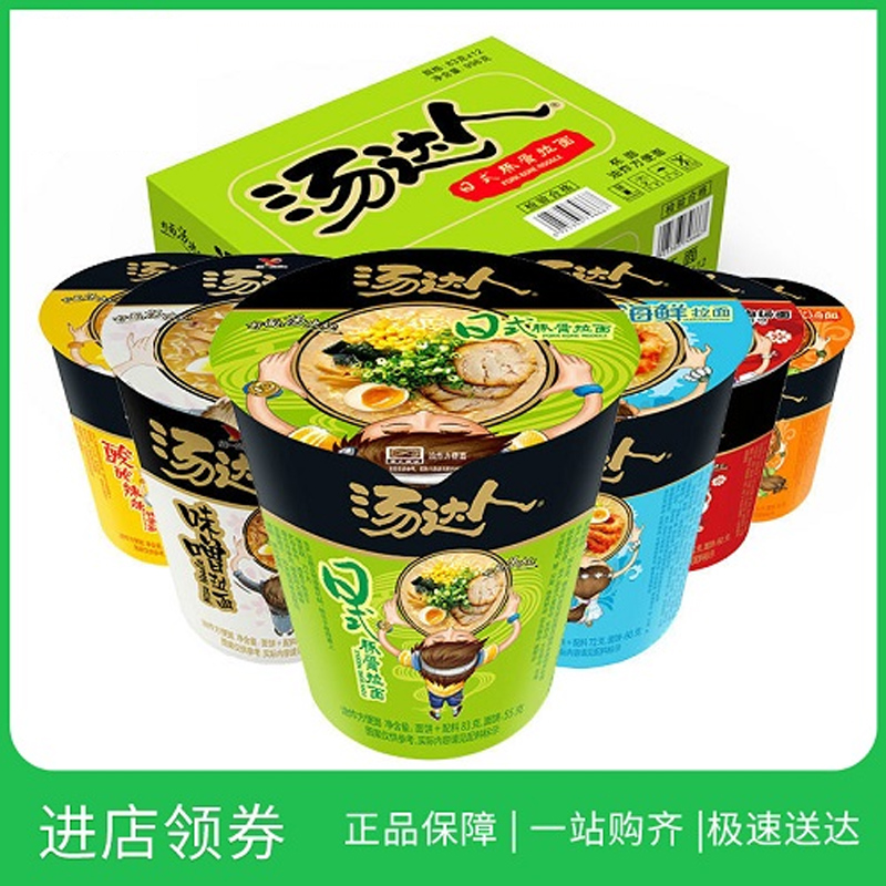 12 cups of Soup Daren—randomly mixed flavors 12 cups of Soup Daren—Japanese-style pork bone ramen 12 cups of Soup Daren—hot and sour pork bone noodles 12 cups of Soup Daren—Korean spicy beef noodle soup Soup Daren