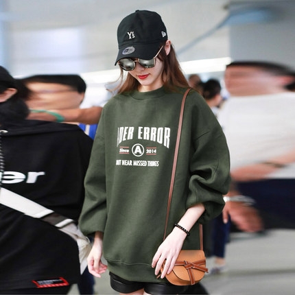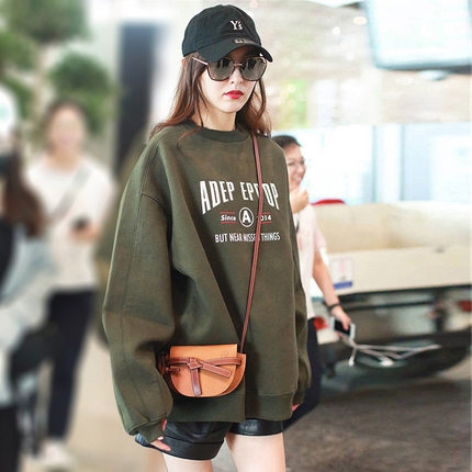 Europe station 2022 fall new thick cotton T female net red same round collar printed loose temperament sleeve head long sleeve blouse