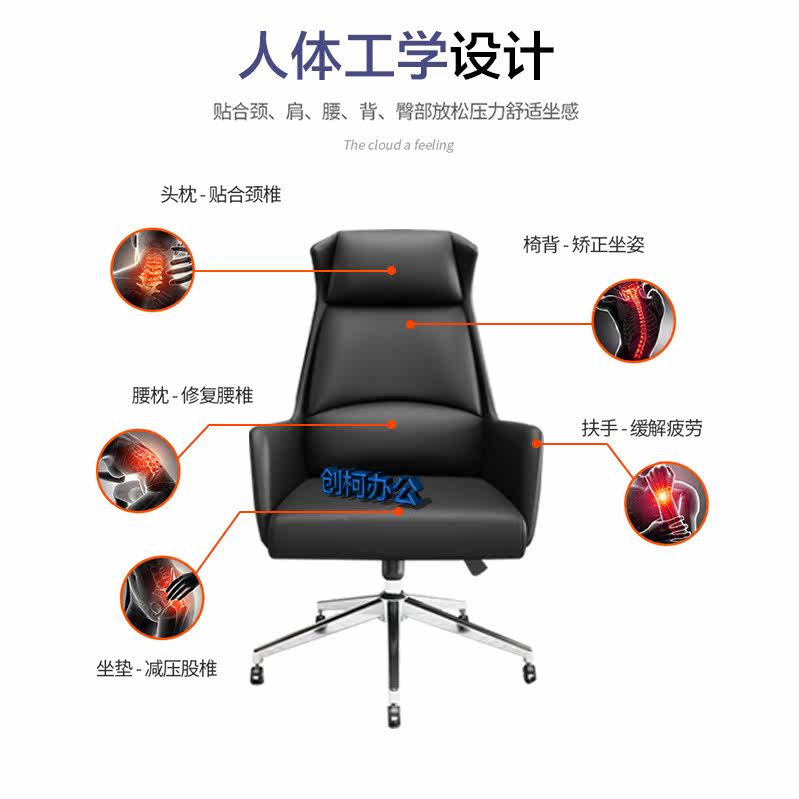 Leather boss office chair executive seat home computer backrest chair comfortable soft lift swivel chair reclining
