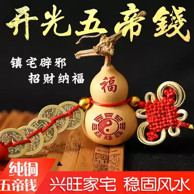 Peach Wood gourd five Emperor money (already opened) evil spirits gossip five Emperor money (already opened) to attract wealth, Jinbao five Emperor money (opened)