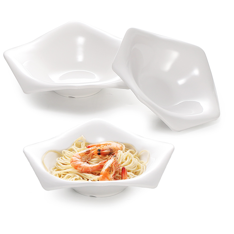 A5 Melamine Creative Heteromorphic Soup Bowl White Imitation Porcelain Japan Style Lanoodle Bowl Dense Amine Bowl Rice Hall Soup Bowl Grilled Pan Thickened