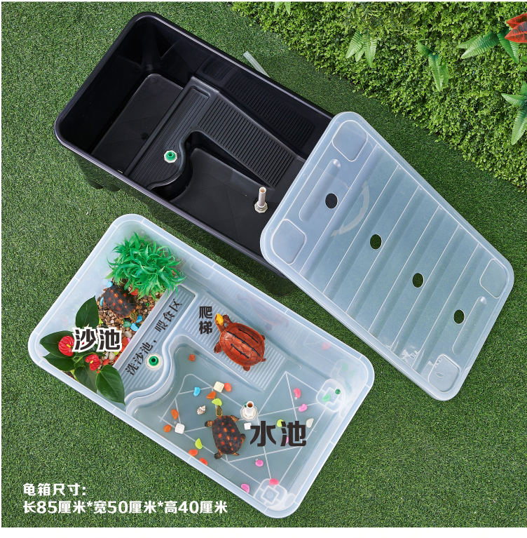 Turtle tank with sunbathing egg area medium and large villa luxury household stone turtle ecological breeding box turtle pond with drainage
