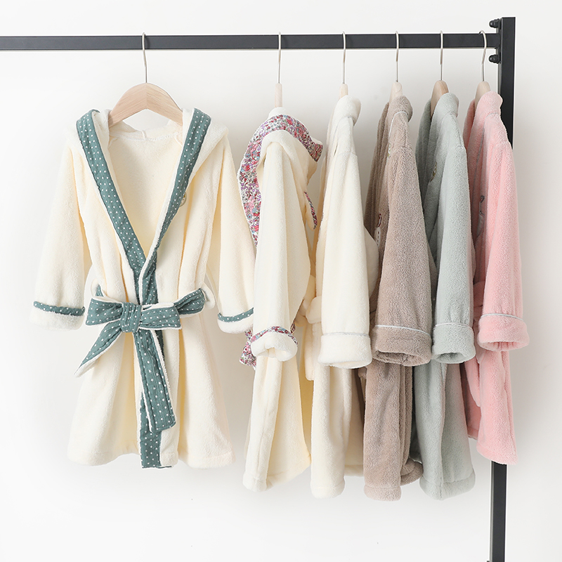 Water absorption quick-drying Children's hooded bathrobe Winter thickened warm pajamas Boy and girl yukata Baby nightgown