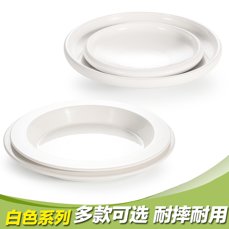 A5 melamine thickened white imitation porcelain Japanese round plate soup plate plate hotel restaurant plate deep plate
