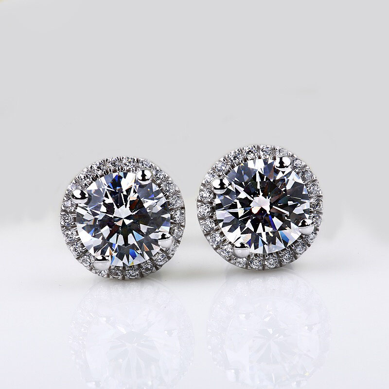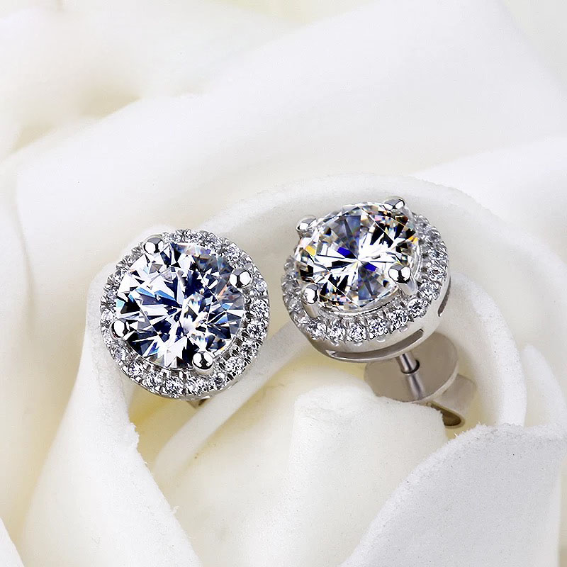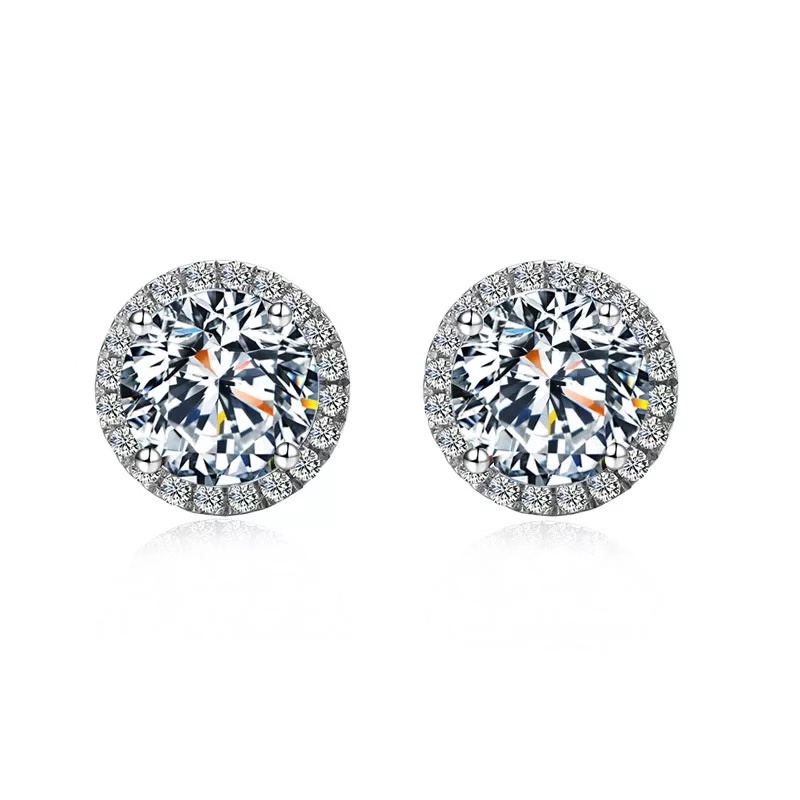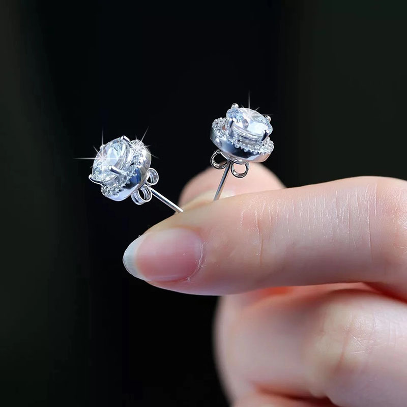 24K Platinum Studded Imported Mosanstone D Color Four Paws Bag Edge Group Insert Ear Needle Round Drilling Short Earrings Woman