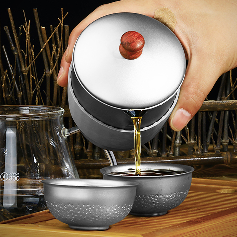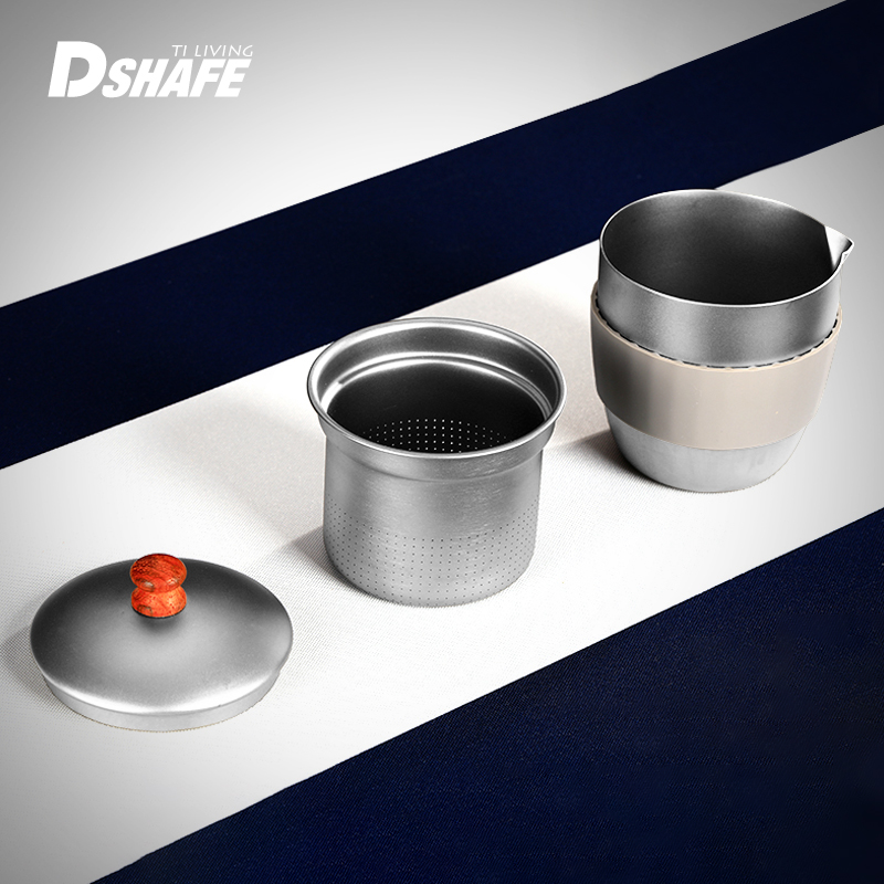 Pure titanium kung fu tea set home portable outdoor travel business trip with titanium filter teapot double layer tea maker