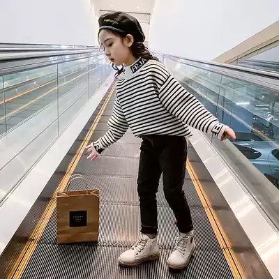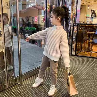 Mink velvet girls spring and autumn sweater 2021 new autumn and winter clothes large children's children's western style plus velvet thick bottoming shirt