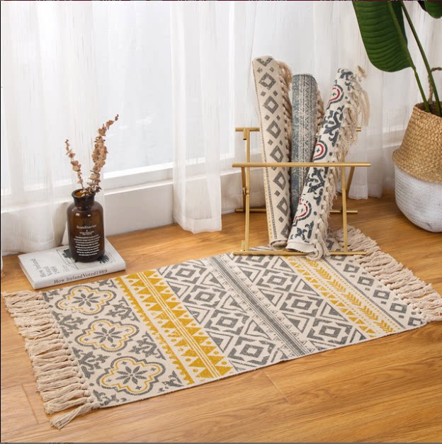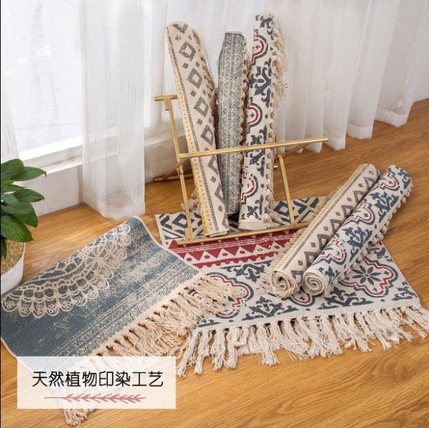 ins national wind cotton linen bedroom bedside mat floor mat floor mat living-room sofa carpet tatami mat can be machine washable