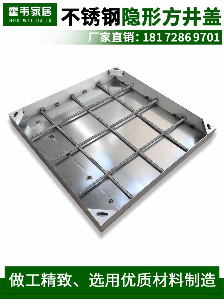 Stainless steel 304 invisible manhole cover round square rainwater sewage type sand cellar Galvanized bottom plate Steel grille can pass the car