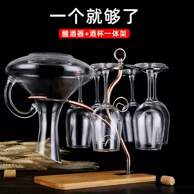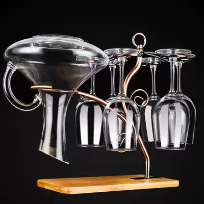 Yingke Pine solid wood one frame Yingke Pine solid wood one frame red wine glasses 6 with a decanter decanter integrated stand decanter one frame decanter Integrated Rack 6 red wine glasses crystal belt wake up the decanter