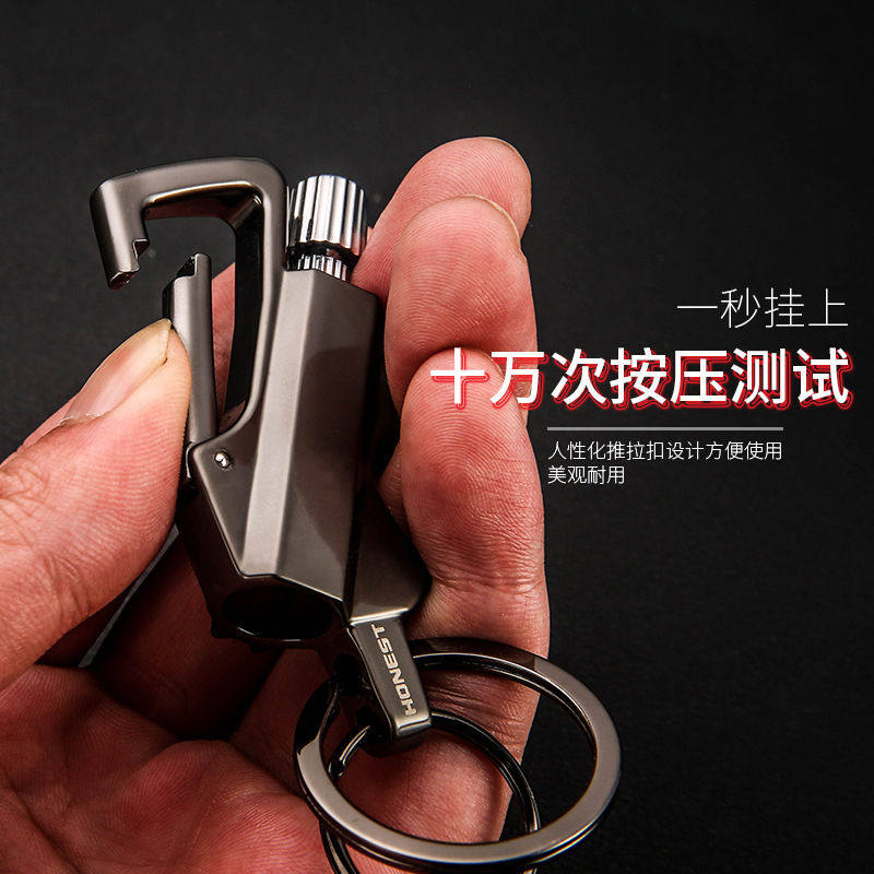 Douyin million times match keychain lighter car key three-in-one multi-functional male waist hanging outdoor pendant