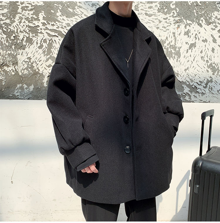 Woolen suit jacket men's casual tide brand ins trend windbreaker loose Korean version short woolen coat male student