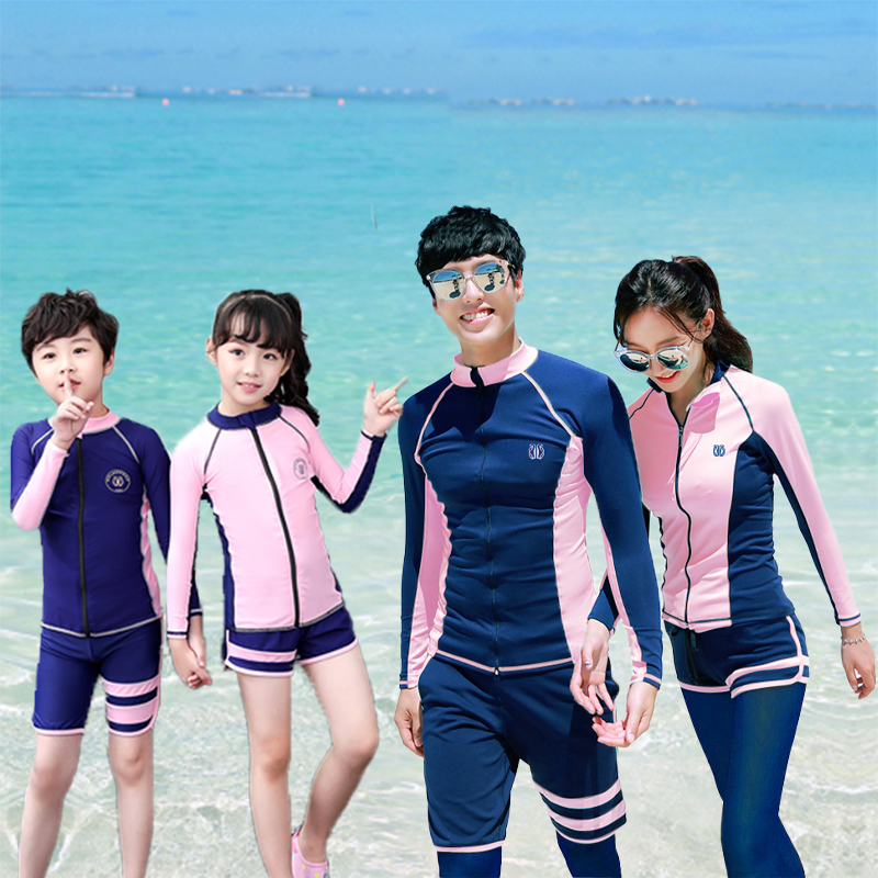 Parent-child wetsuit Couple suit Male and female children three small and medium children sun protection quick-drying two-piece long-sleeved swimming jellyfish suit