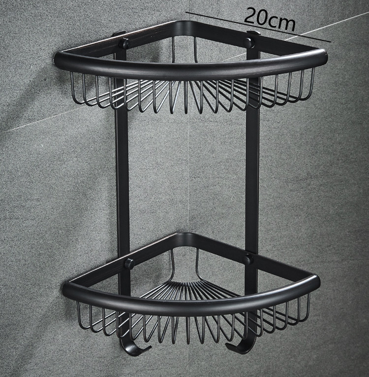 Black all-copper bathroom toilet powder room toilet washstand corner rack shower room triangle basket double layer