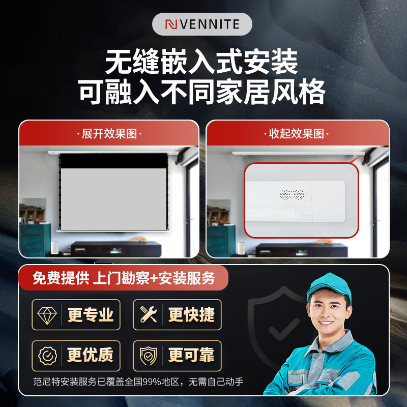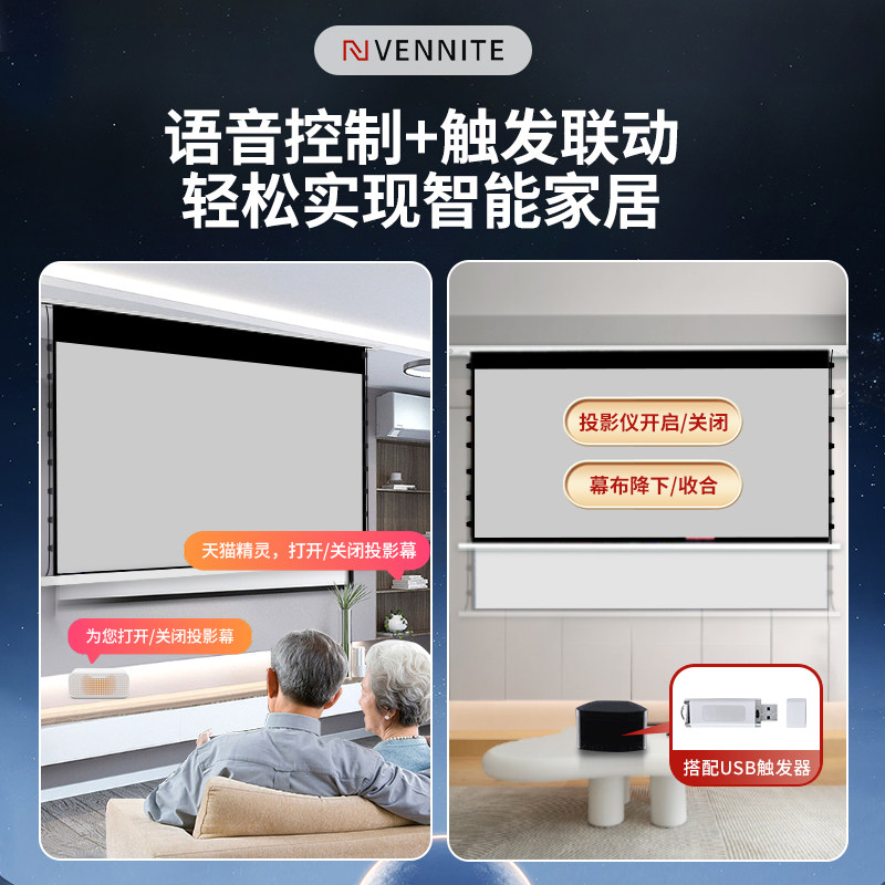 Fannitt anti-light embedded projection curtain cloth electric pull wire ceiling concealed ceiling concealed hide type 4K voice projector home throwing wall HD 100 inch remote control automatic lifting electric curtain