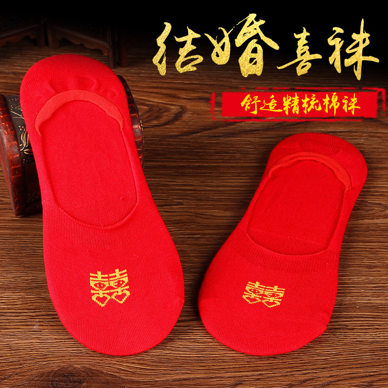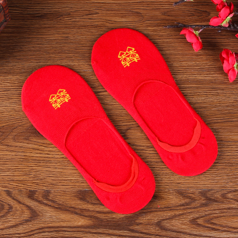 Wedding Red Socks a pair of large red male and female couples Sox 1 Double all-pure cotton Hex stocking Invisible Boat Socks of the Year