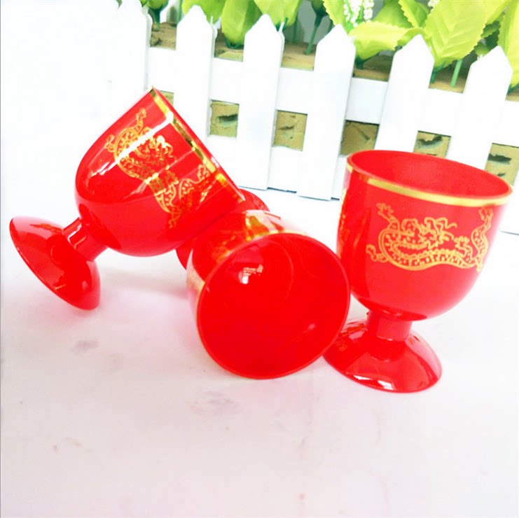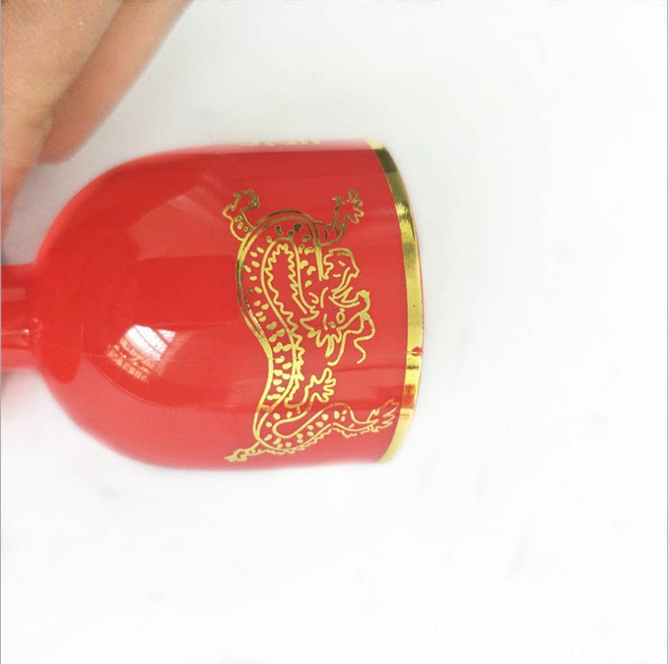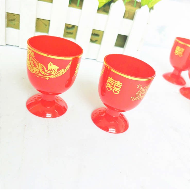 Wedding supplies Wedding red bowl Plastic dragon and phoenix bowl Happy word small wine glass Wedding toast cup Dragon and phoenix chopsticks