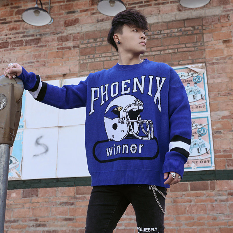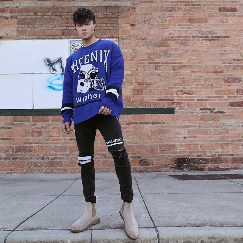 BluesFly Original Trend Pattern Case Lifted and Roll-collar Warm Embroidery Sports Sweater Autumn Winter Sweater Men