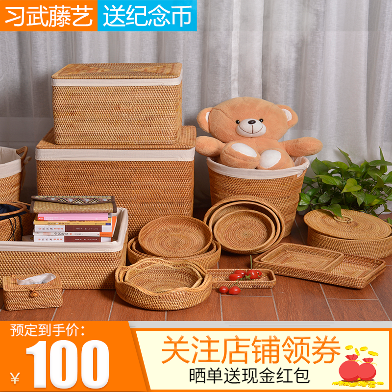 Vietnamese rattan storage box storage basket dirty clothes storage basket bedroom woven basket fabric Nordic home large