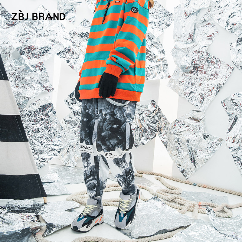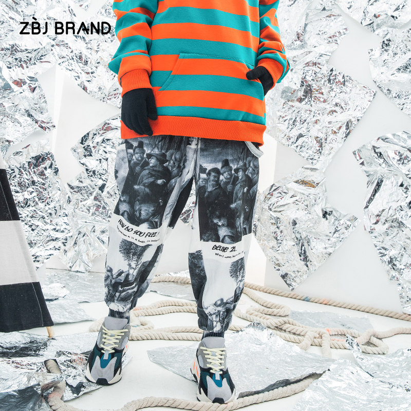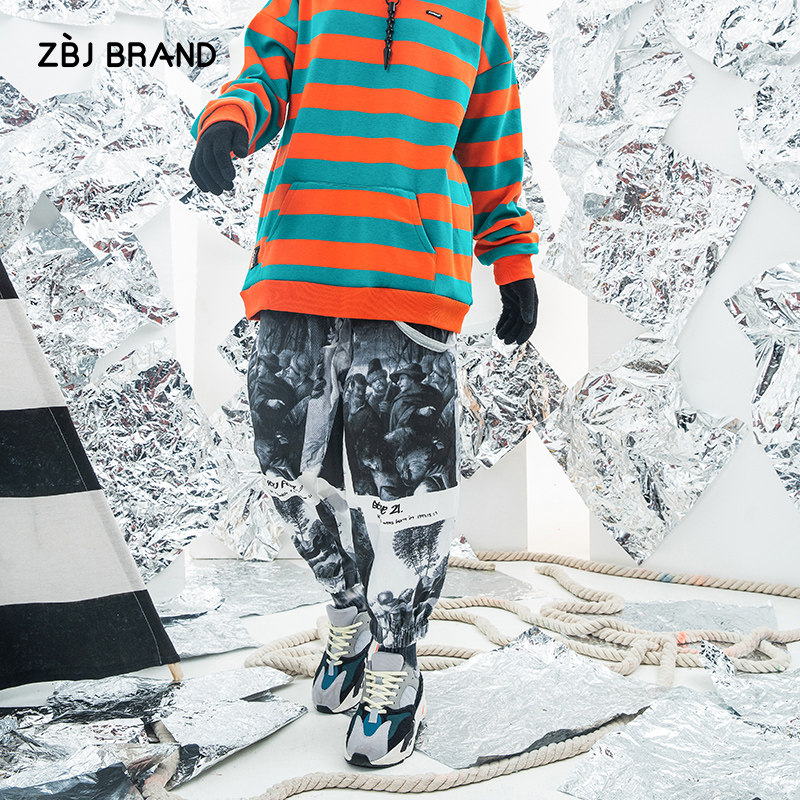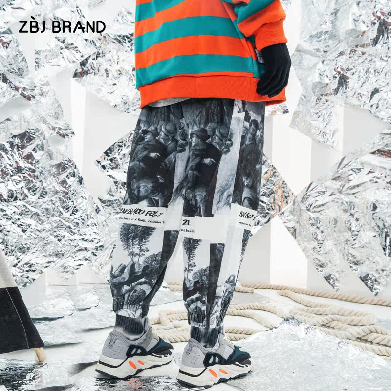 ZBJ Oil Painting Pants Fall Winter Pants Pasted with Lax Harlen Beam Pants Guotide Street Hip Hop