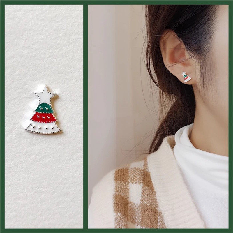 Pure silver Christmas series earrings 2019 new tide miniature mini suitable for winter ear decorations
