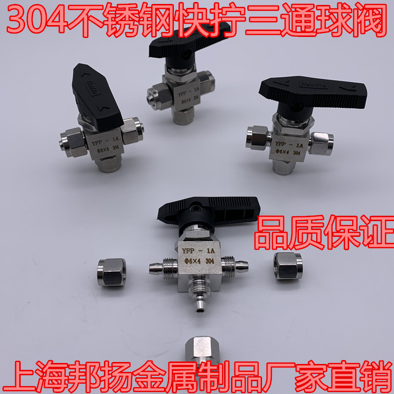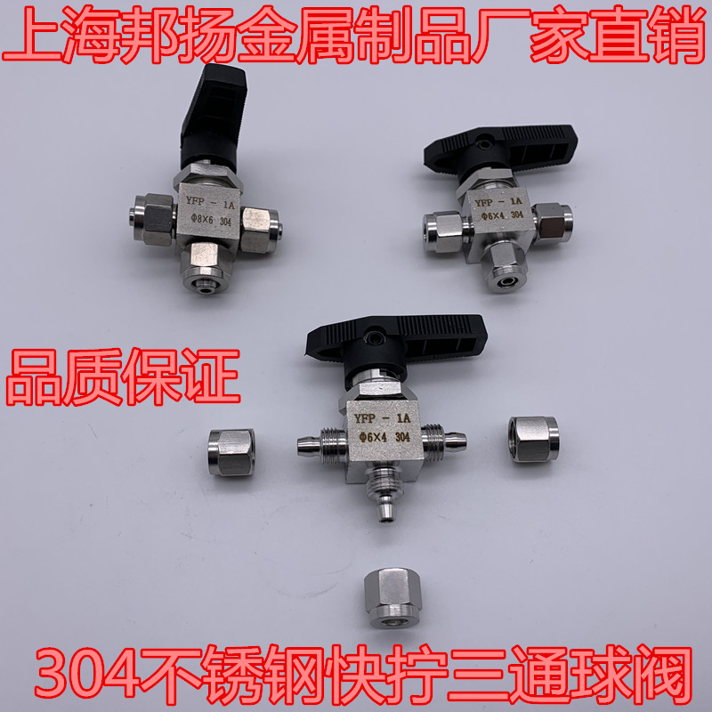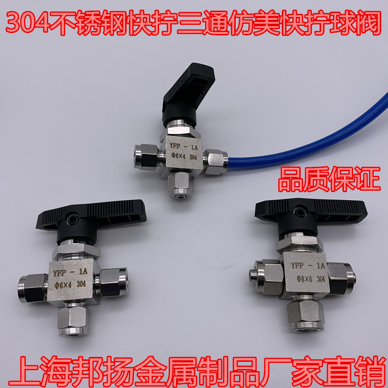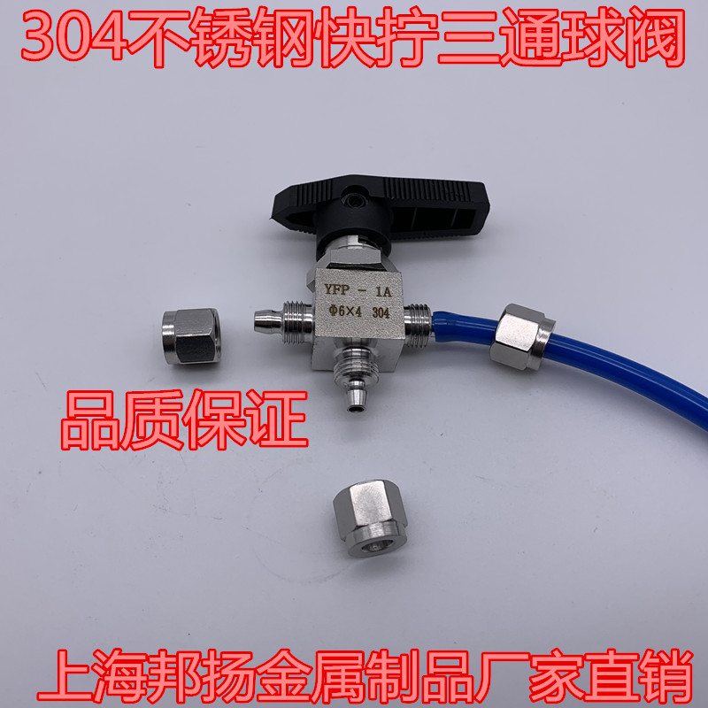 Stainless steel quick screw three-way switching ball valve Air source valve Manual flow control switch connected to PU pipe hose directional control valve