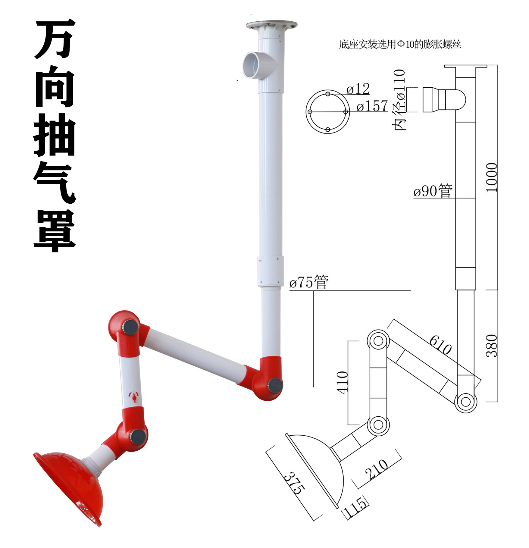 Atomic assay test laboratory pp universal suction exhaust air exhaust suction wind stainless steel ventilation hood
