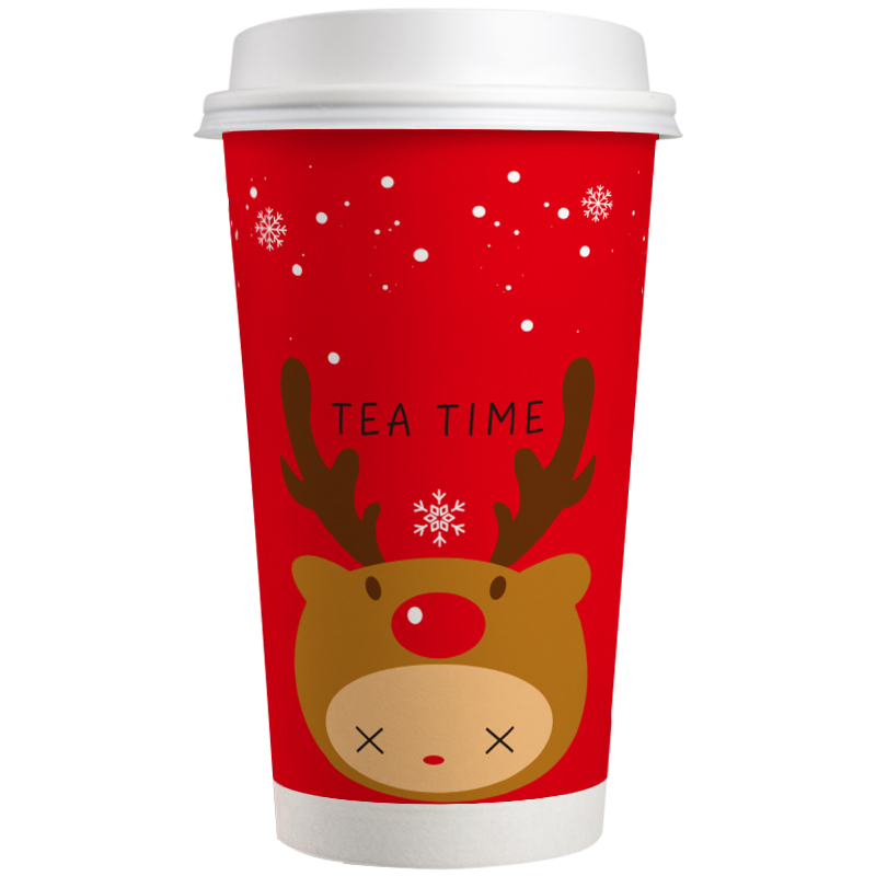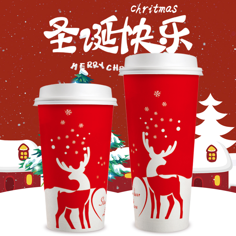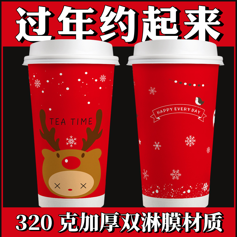 Christmas red milk tea paper cup disposable with lid 500ml700 net red thickened coffee hot drink packaging cup customization