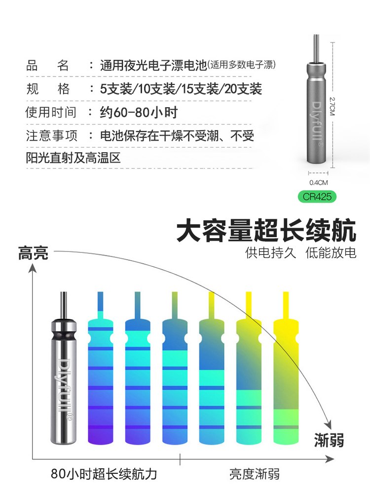 Night light drift battery fishing electronic drift battery universal night fishing float battery power source CR425