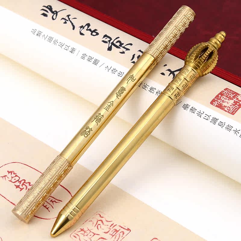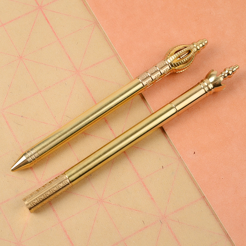 Fine Pure Brass Brass Pen Ruyi Gold Stirrup Series Middle Sex Pen Brass Handcrafted Gift Pen Signature Office Stationery