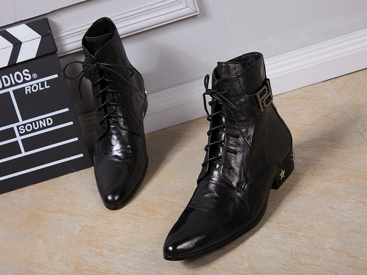JACKS fashion Korean version of short boots pointed leather shoes lace up men's high stage boots business Martin boots men's tide