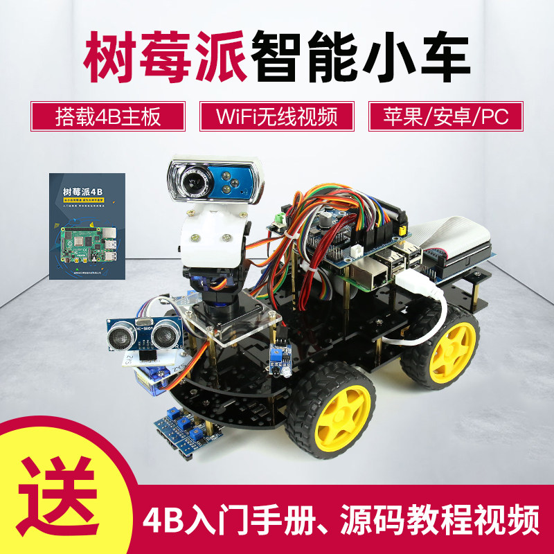 Raspberry Pi robot 4B smart car WiFi wireless video programmable mobile phone control monitoring Smart car