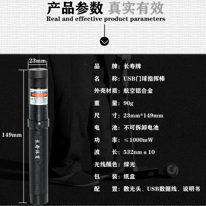 Longevity Gate Ball Commanding Pen USB Charging Green Light Race Coach USB Charging High Power Command Flashlight