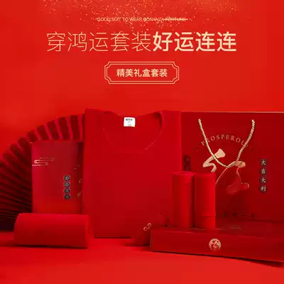 Hengyuanxiang's year of life fever clothes for men and women plus velvet thickened pure cotton big red autumn clothes sanitary pants suit year of the rat