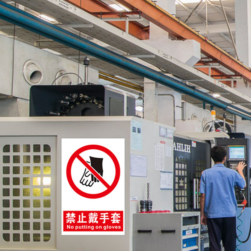 Prohibition of wearing gloves safety warning sign It is strictly forbidden to wear experimental gloves to touch the warning sign when operating this equipment