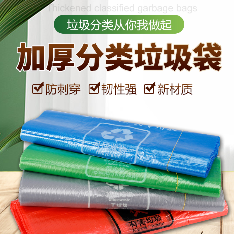 Bunkou portable garbage bag classification kitchen waste recyclable dry and wet other harmful green blue-grey red community issuance